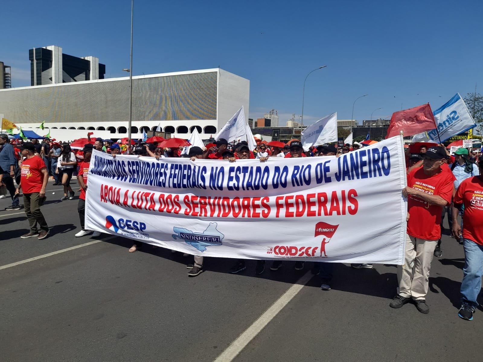 A Marcha contou com a presença de entidades que compõem o Coletivo das Três Esferas do SINDISERF-RJ, ao lado da CESP Central Sindical, CSPB, Nova Central, Força Sindical, CTB, CSB, CUT, do Movimento Sindical Unificado, Condsef/Fenadsef, Fonasefe e diversas representações sindicais das três esferas de governo.