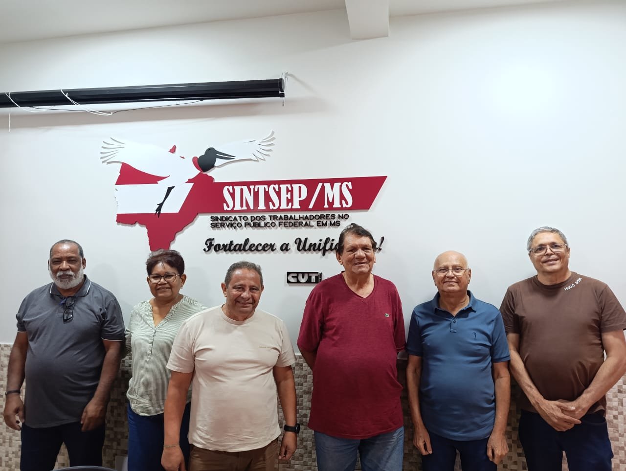 Os diretores do SINTSEP-MS, Maria Helena Faria, Élio de Araújo e Jorge Guimarães, receberam em Mato Grosso do Sul a comitiva do SINDISERF-RJ, composta pelo presidente Jorge Ferreira Lima, o tesoureiro-geral André Luiz Silva e o coordenador político João Carlos Simão Almeida.