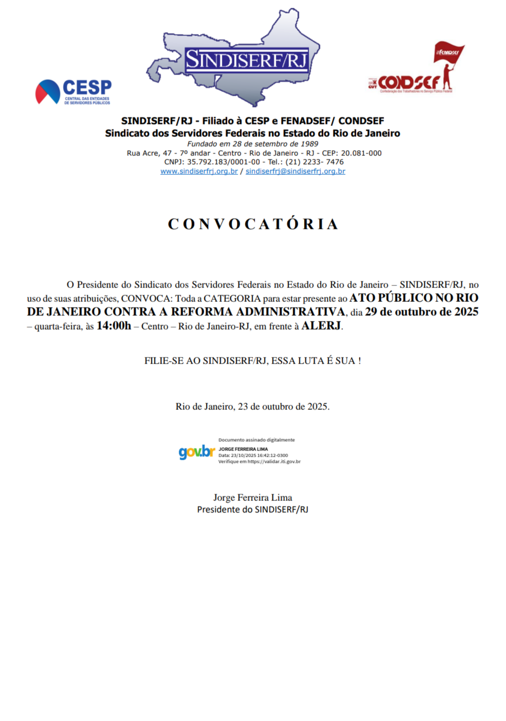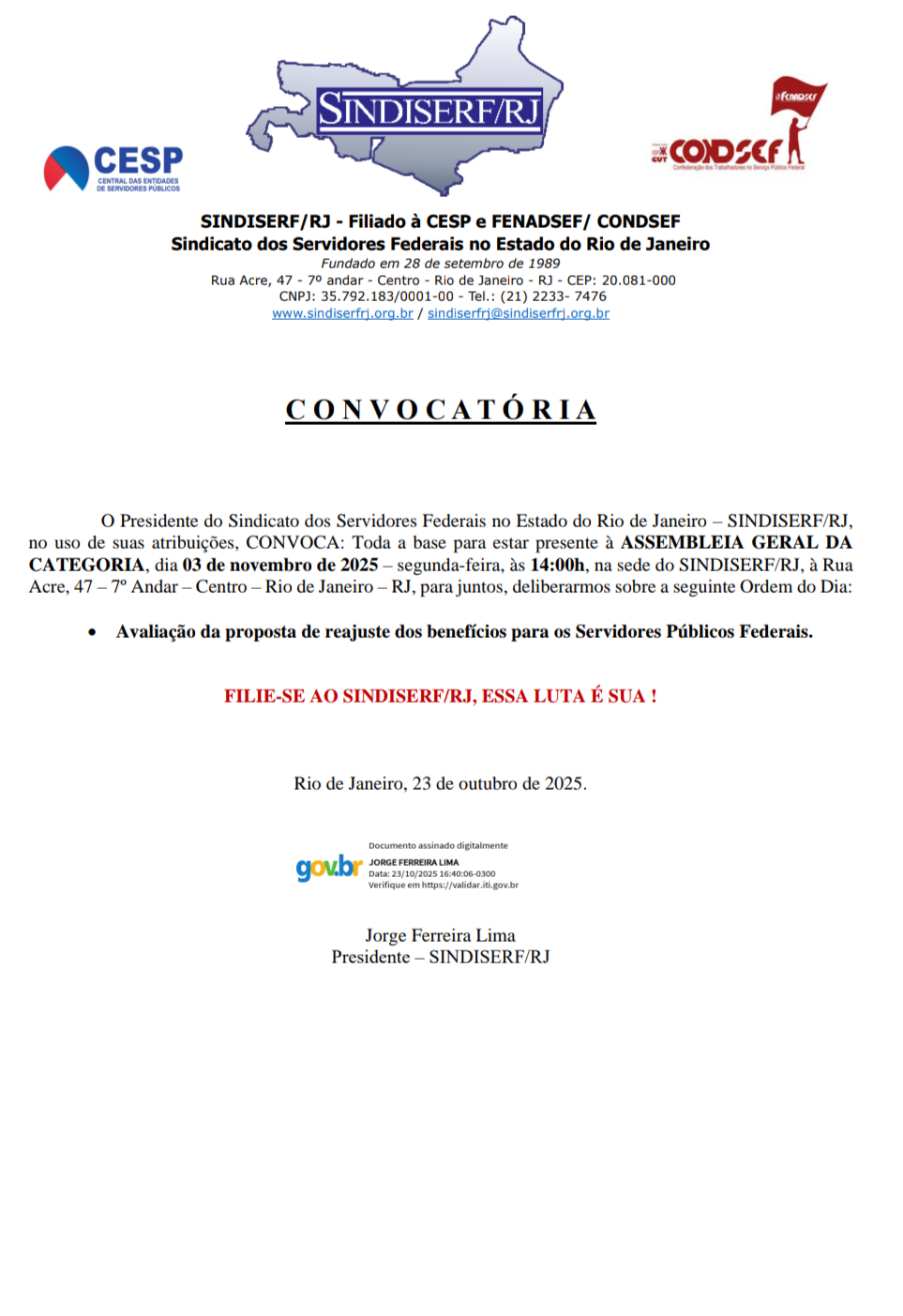 Ofício Circular CONDSEF/FENADSEF n° 065/2025 (Nota Informativa – Registro Sindical) VEJA TAMBÉM: