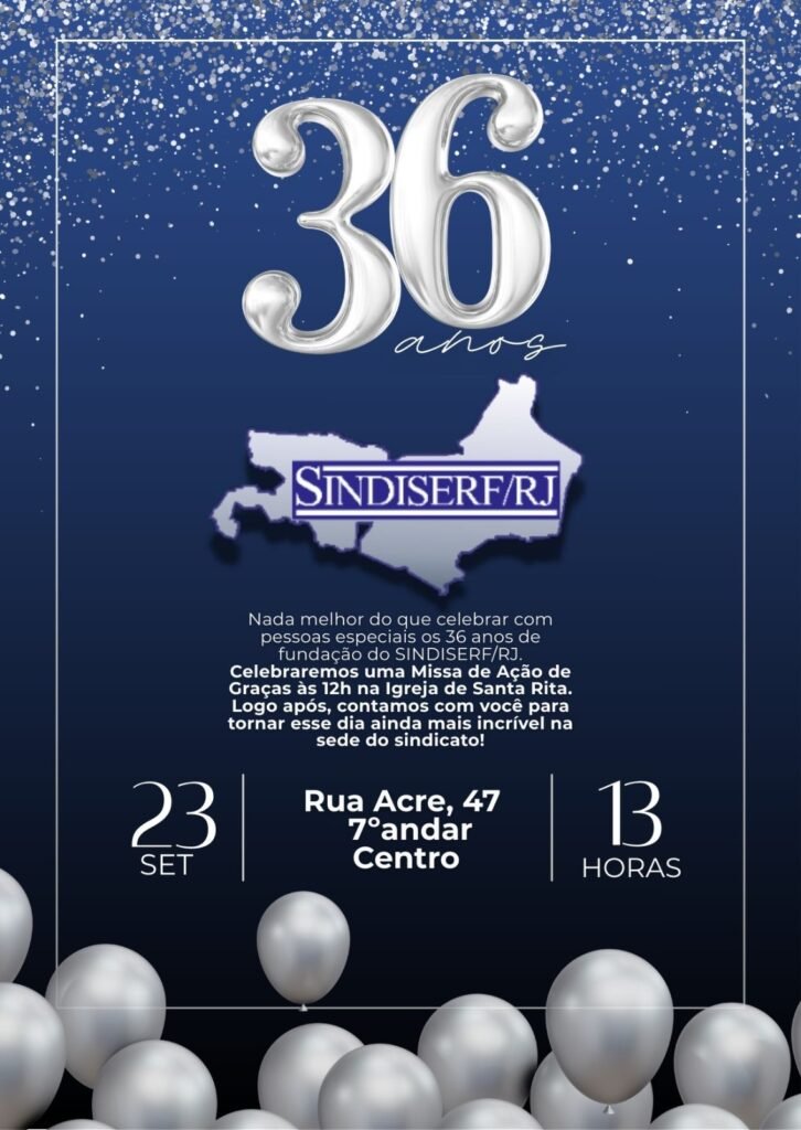 O SINDISERF/RJ completa 36 anos e a comemoração já tem data e hora marcada!
